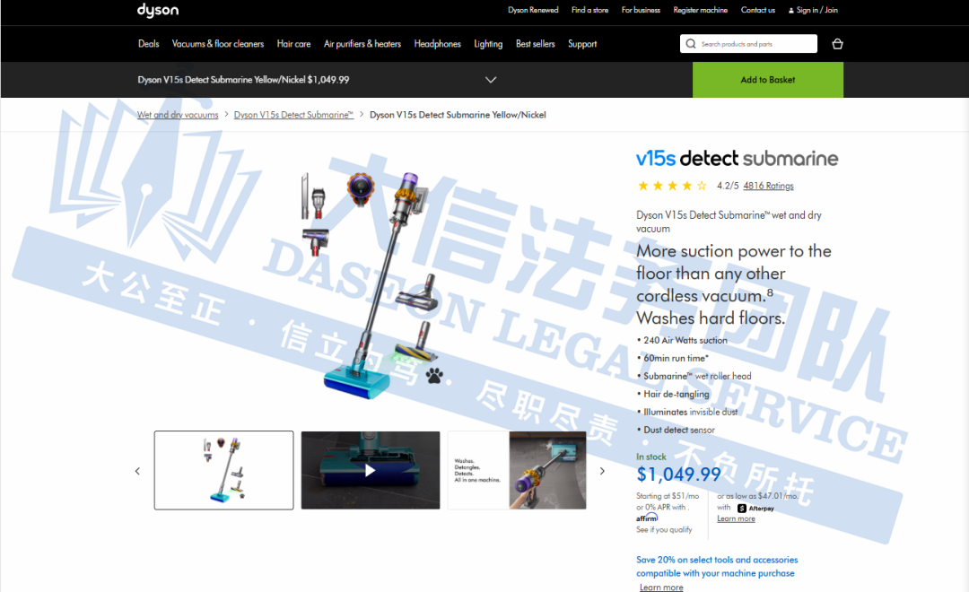 原告是英国顶尖的工程技术创新公司,于1983年创立,专注于家电产品的研发与制造,核心产品包括无绳吸尘器、无叶风扇、吹风机、空气净化器及头发护理设备等,以颠覆性技术和高端设计著称如全球首创的无叶风扇,戴森产品广受欢迎,在消费者心中,戴森品牌象征着高品质,尤其在吸尘器及相关配件领域具有很高的知名度。