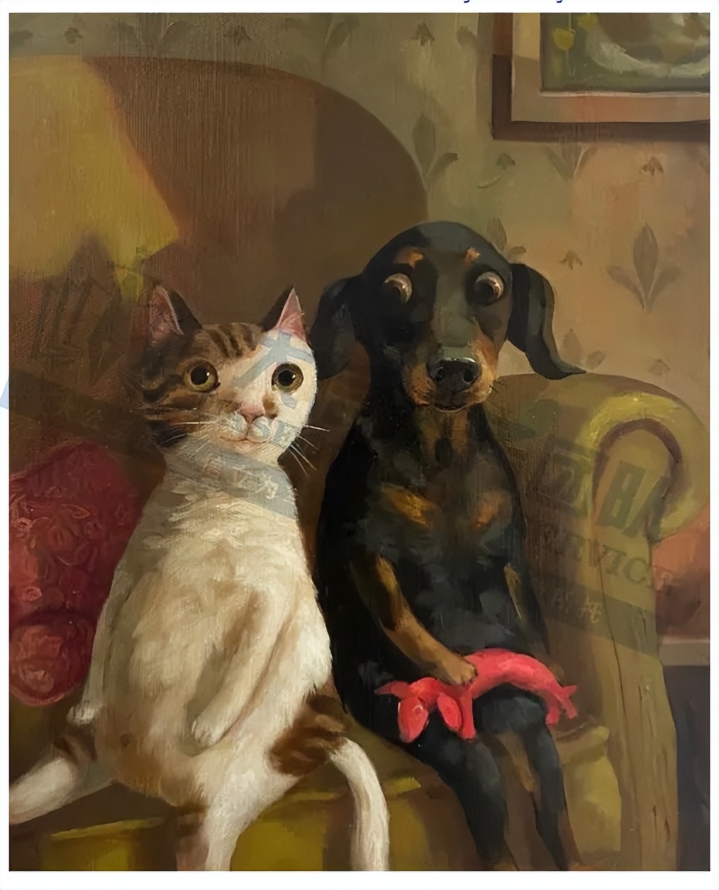 原告来自英国的现实主义艺术家,每一幅画都充满梦幻般的细腻笔触。她的画作灵感来源于大自然,与生俱来的幽默感使她敏锐地捕捉到了动物们的秘密生活。无论是在吃棒棒糖,还是喝杜松子酒,每个动物角色犹如人一般栩栩如生,为每一个养宠家庭增添了一份值得怀念的回忆。