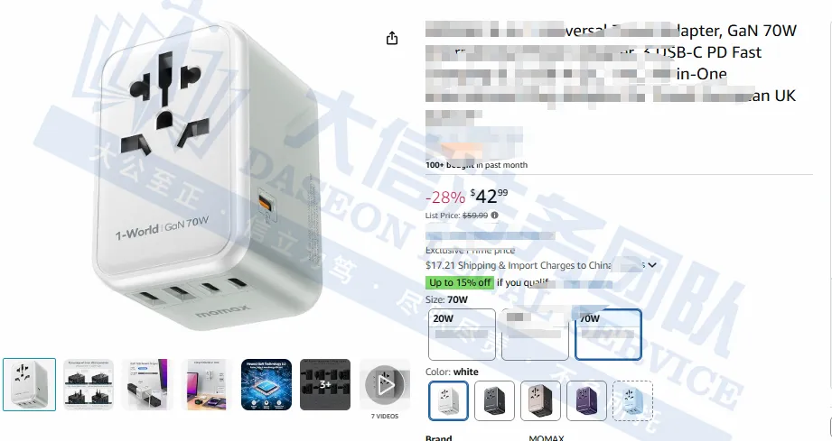原告是来自我国广东的跨境卖家,产品涵盖支持全球多国插头标准的旅行适配器,且部分型号集成USB输出接口,满足多设备充电需求,这一款多国适配的电源转换器过载保护装置,具有安装便捷、结构稳定、安全性高,有效防过载与误拔损坏,深受广泛用户的喜爱。