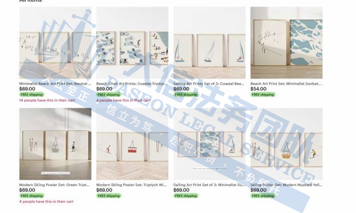 此案为版权维权,目前已有137家店铺被冻,涉及7张版权作品,除此之外,官网的其他作品未经授权均不得擅自使用,以下是涉及版权具体信息,侵权风险极高,跨境卖家尽快检索下架,避免造成更大的TRO侵权损失!