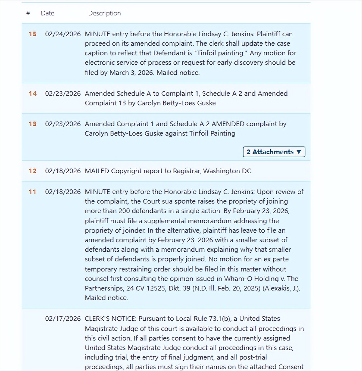 此案为版权维权,连发两案,目前已有367家店铺被冻,涉及22张版权作品,注意,原告在美国共注册了154个版权,除此之外,官网的其他作品未经授权均不得擅自使用,以下是涉及版权具体信息,侵权风险极高,跨境卖家尽快检索下架,避免造成更大的TRO侵权损失!