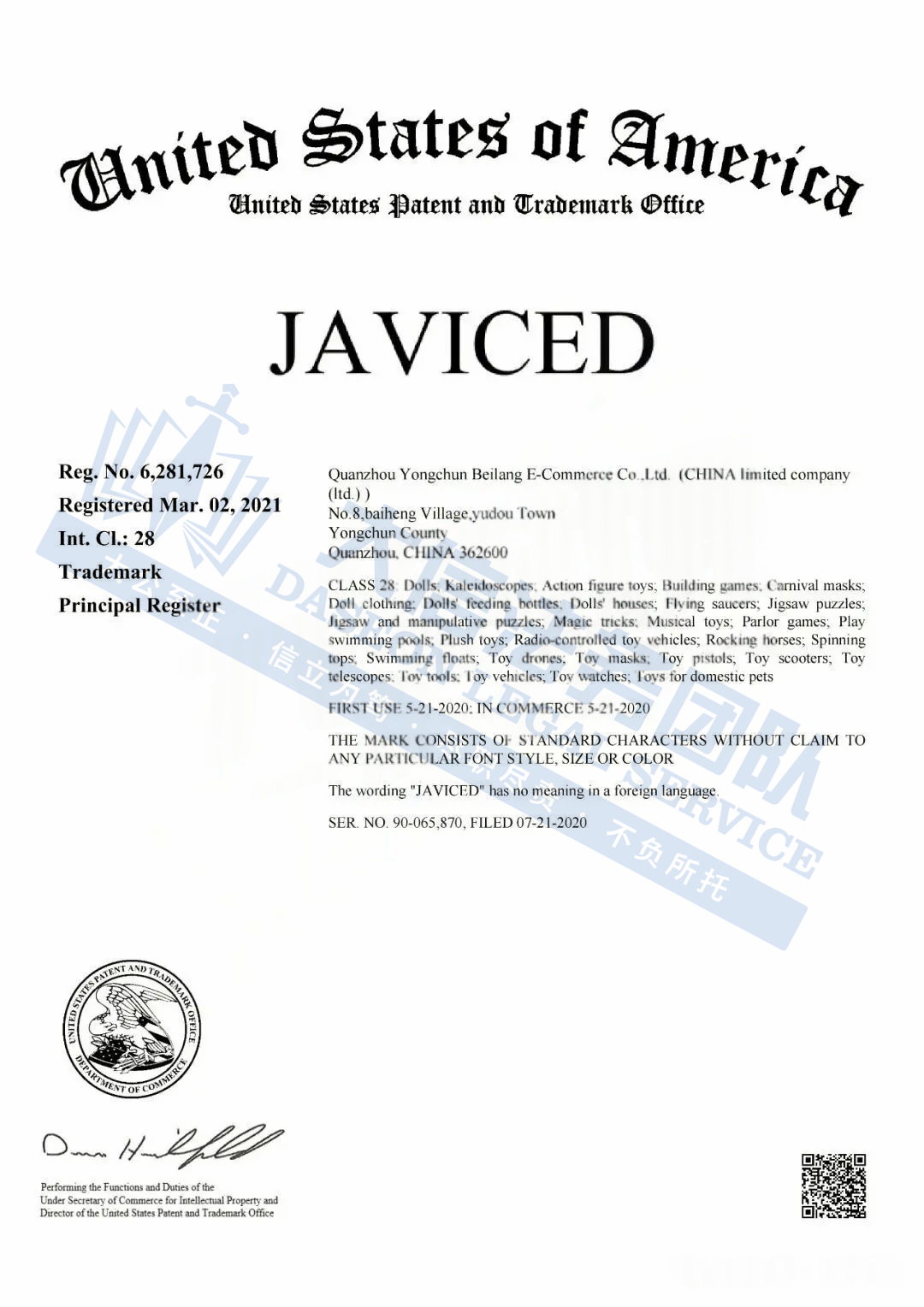 此案为商标维权,涉及JAVICED品牌商标,商标号:NO.6281726。以下是涉及商标的具体信息,未经授权不得擅自使用,侵权风险极高,跨境卖家尽快检索下架,避免TRO侵权风险
