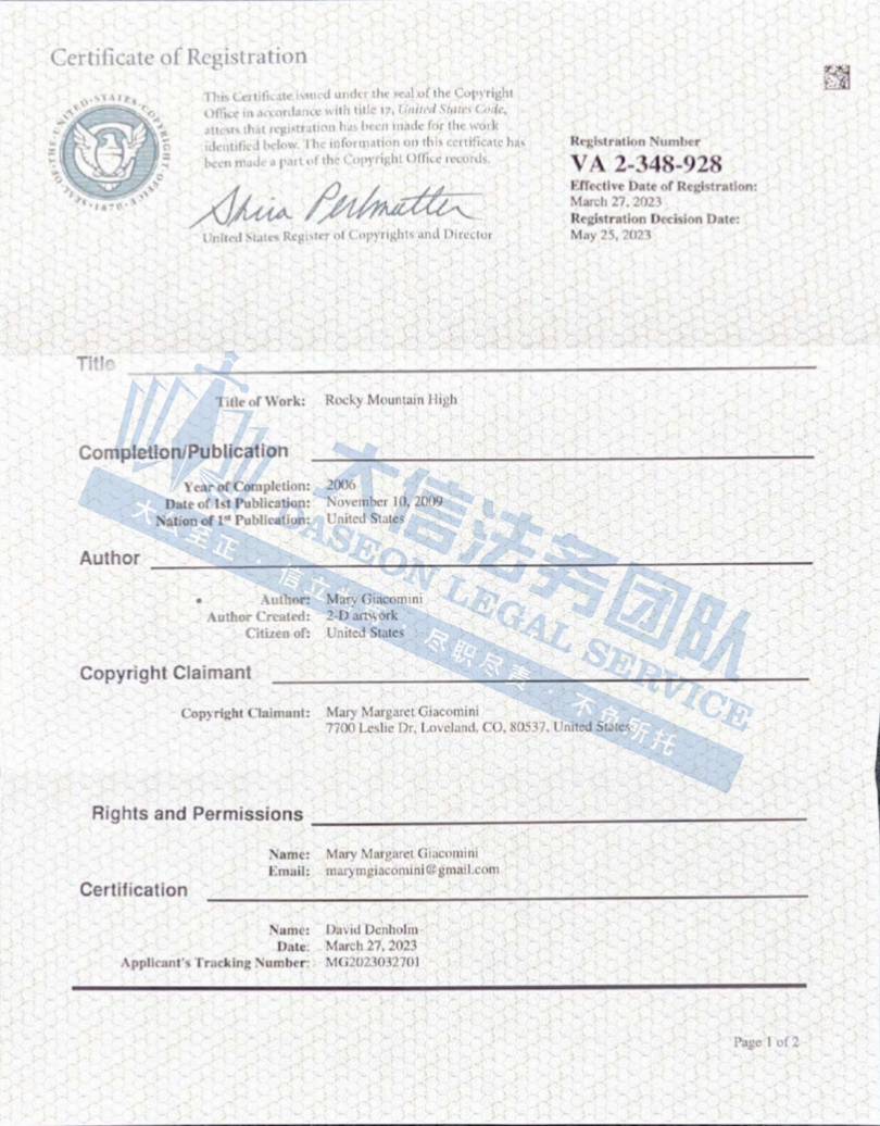 本案为版权侵权,涉及原告代表作品Rocky Mountain High的版权,版权号:VA0002348929。本案共有23家店铺被波及,以下是涉及版权的具体信息,未经授权不得擅自使用,侵权风险极高,跨境卖家尽快检索下架,避免TRO侵权风险!