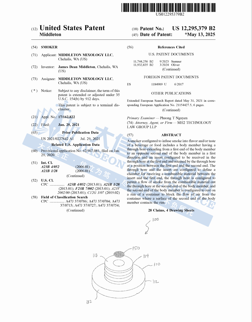 本案为专利侵权,涉及原告1个专利产品,专利号:US 12295379 B2。本案共有200家店铺被波及,以下是涉及专利的具体信息,未经授权不得擅自使用,侵权风险极高,跨境卖家尽快检索下架,避免TRO侵权风险!