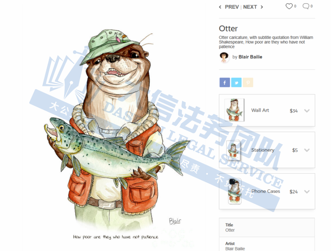 本案为版权侵权,涉及原告1幅水獭版权,版权号:VA0002359243。本案共有28家店铺被波及,以下是涉及版权的具体信息,未经授权不得擅自使用,侵权风险极高,跨境卖家尽快检索下架,避免TRO侵权风险!