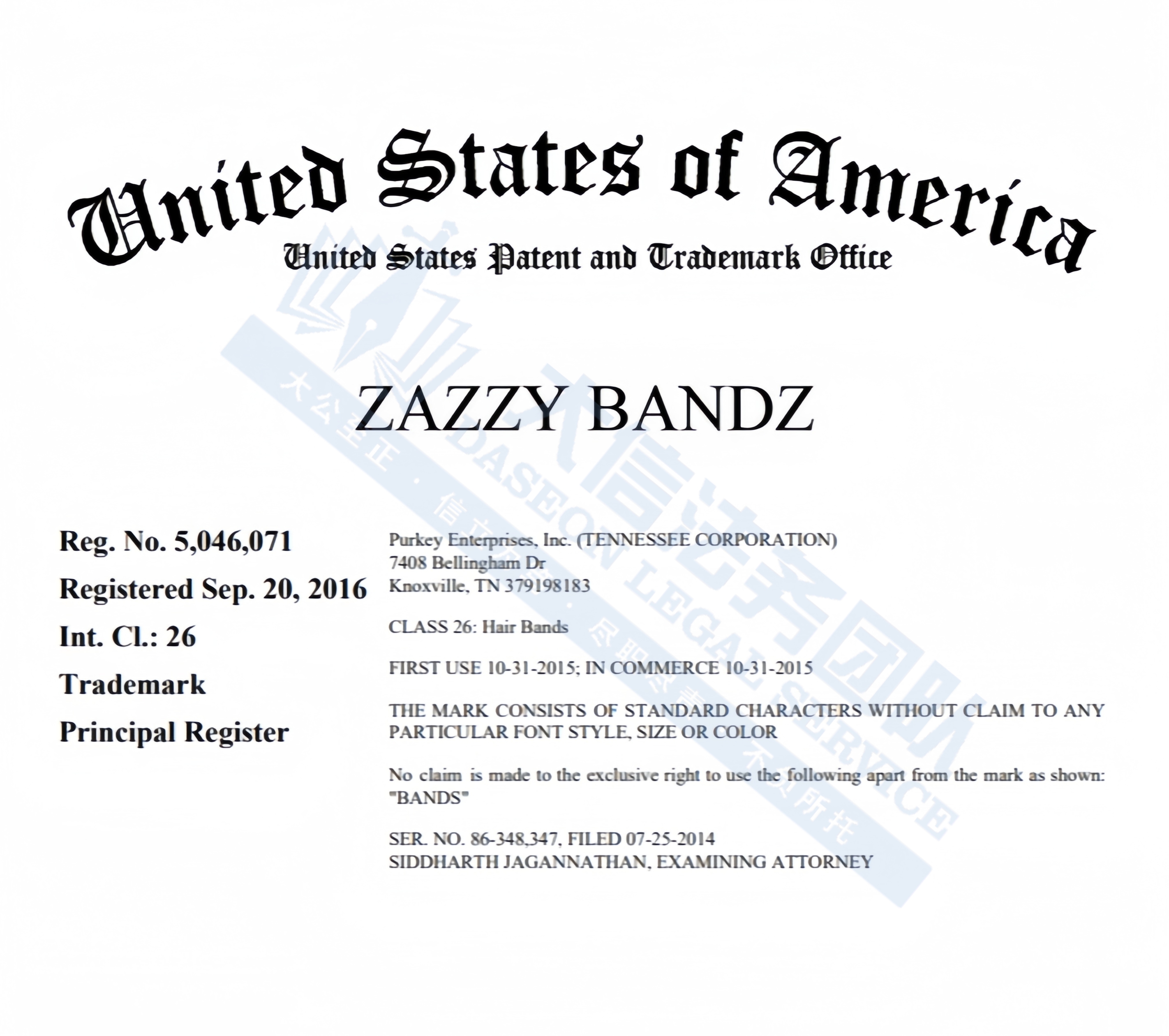 Zazzy Bandz发箍商标版权专利维权