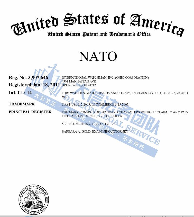 03 NATO 钟表商标维权 案件号:24-cv-22046 立案时间:2024年5月29日 原告:INTERNATIONAL WATCHMAN, INC.(TM CO.) 代理律所:Sriplaw 原告介绍 原告INTERNATIONAL WATCHMAN, INC.是一家来自俄亥俄州的公司,该公司主要产品包括高质量的手表、手表零件、表带、表链以及其他类似的产品和配件。NATO正是该公司旗下的知名手表品牌,NATO 手表带,源自英国国防部为士兵设计的一种坚固耐用的表带,采用精选材料,确保每一条表带都能承受日常生活中的各种挑战,无论是户外探险还是都市穿梭,都能保持出色的性能和外观,迅速在全球手表爱好者中流行起来。
