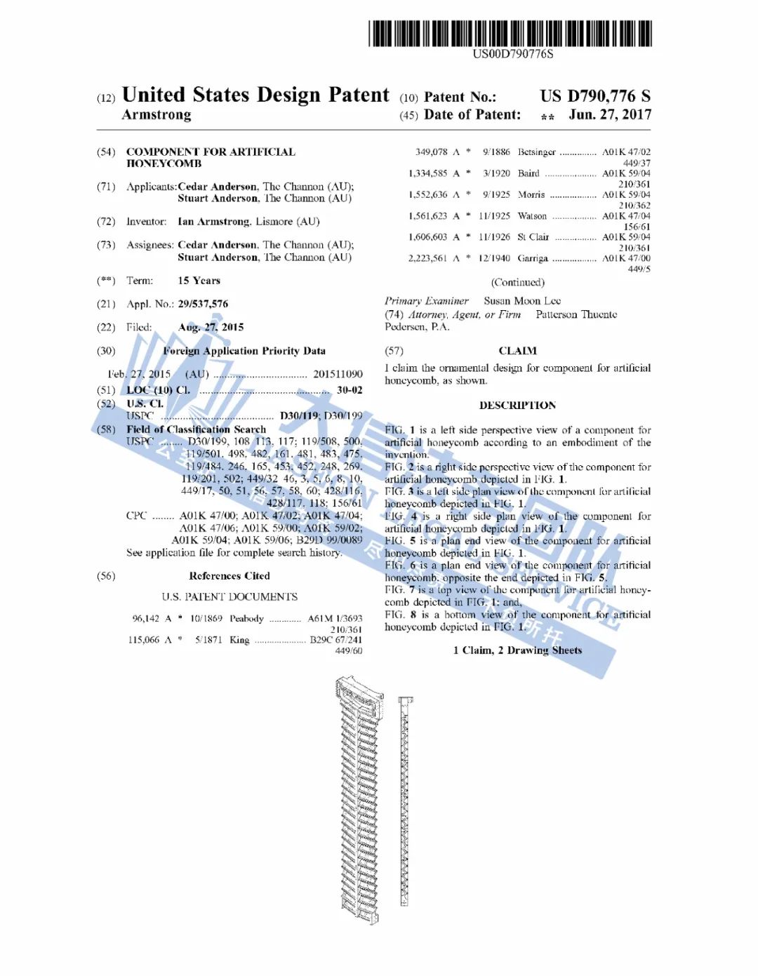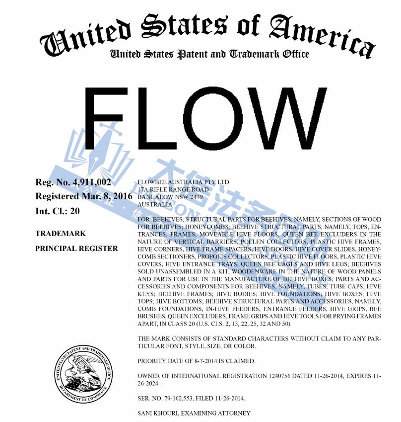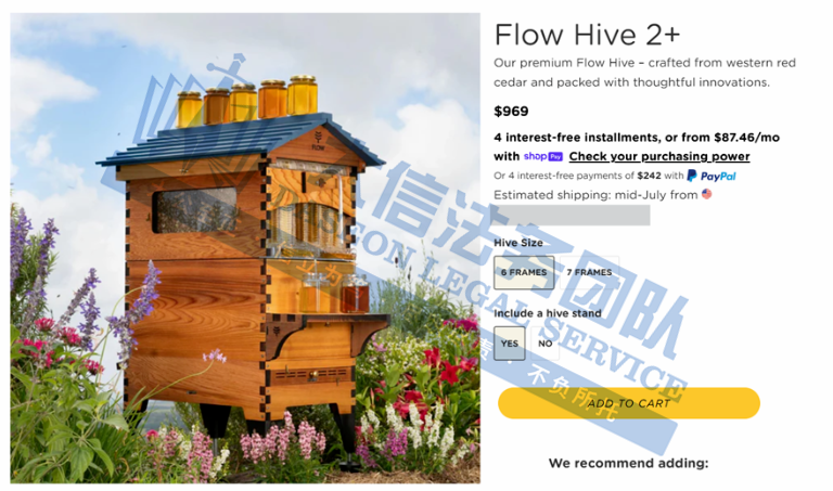 02 Flow Hive蜂窝配件商标专利维权 案件号:24-cv-05583 立案时间:2024年7月2日 原告:FlowBee Australia PTY LTD et al 代理律所:Boies Schiller Flexner LLP 原告介绍 原告FlowBee Australia Pty Ltd et al是一家总部位于澳大利亚的公司,是FLOW 人工蜂窝组件的制造商和经销商。FLOW人工蜂窝组件是Stuart和Cedar Anderson父子团队发明的一项革命性养蜂技术。这一创新源于对蜜蜂深厚情感和对传统蜂蜜收获方式的不满,该蜂巢具有独特的蜂巢框架,内部有垂直通道,是一款利用重力来收获蜂蜜的工具,能够在不伤害蜜蜂的情况下轻松收获蜂蜜。