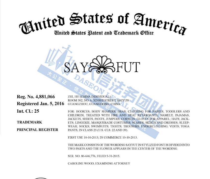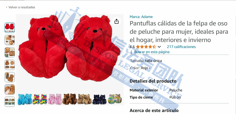 Teddy Bear Slipper 泰迪熊拖鞋 案件号:24-cv-07380 立案时间:2024年8月16日 原告:Aidong Zou 代理律所:Getech Law 原告介绍 原告Aidong Zou是一名国人卖家,主要负责Teddy Bear Slipper的设计和销售。这款拖鞋外观采用泰迪熊的形象设计,能够完美包裹双脚,有助于保持双脚温暖。。防滑外底允许在卧室中无噪音地踩踏。轻巧耐用的橡胶鞋底非常适合室内和室外家庭使用。 案件分析 此案涉及专利维权,相关信息如下。原告在去年就曾发起维权,侵权风险极大!相关卖家注意规避侵权风险! 产品展示 02 Audrey Herbertson 版权画 案件号:24-cv-07206 立案时间:2024年8月14日 原告:Audrey Herbertson 代理律所:Keith 原告介绍 原告Audrey Herbertson是一位当代视觉艺术家,她的风格融合了波普艺术和街头艺术元素,作品通常充满了强烈的视觉冲击力和情感表达。她的艺术触角广泛,不仅限于数字领域,还延伸至针毡、雕刻、传统绘画、混合媒体、拼贴画、缝纫及时装设计等多元艺术形式,展现其艺术才华与创造力。 官网:https://www.audreyherbertson.com/ 案件分析 此案共涉及4张版权画,未经授权不得擅自使用,侵权风险极大! 产品展示 03 服装类FOCUSSEXY商标 案件号:24-cv-07399 立案时间:2024年8月16日 原告:Guangzhou Luck Commerce Co. Ltd. 代理律所:Getech Law 原告介绍 原告Guangzhou Luck Commerce Co. Ltd. 是来自中国的一家批发企业,其产品线涵盖鞋帽、服饰、假发等产品的批发与零售业务。YOULOVEIT品牌成立于2017年,专注于塑身衣品类,为热爱运动的人提供更舒适的装备,在亚马逊平台有着不错的销售成绩。 案件分析 此案涉及商标维权,商标包含:LELINTA、YOULOVEIT、 FOCUSSEXY、SAYFUT等,分别注册在第25和26大类,涉及假发、塑身衣等品类。原告在去年3月就曾提起商标诉讼,冻结了不少卖家。再度归来,相关卖家注意规避风险! 产品展示 今天就分享到这里了,感谢你的阅读。大信团队会持续为你带来最新的侵权咨询。想要了解更多内容,可关注我们【大信团队】。 如果有关于店铺大额资金冻结、同行解决不了、缺席判决、多次谈判博弈无法和解的案子可以添加我们联系方式,我们将为你提供最优质的法律服务。 我们始终坚信,法律服务没有捷径,容不得任何滥竽充数的行为。大信法务团队有中美资深律师,在美国TRO诉讼行业深耕多年,处理过上万起TRO侵权案,致力于为中国跨境电商卖家保驾护航!