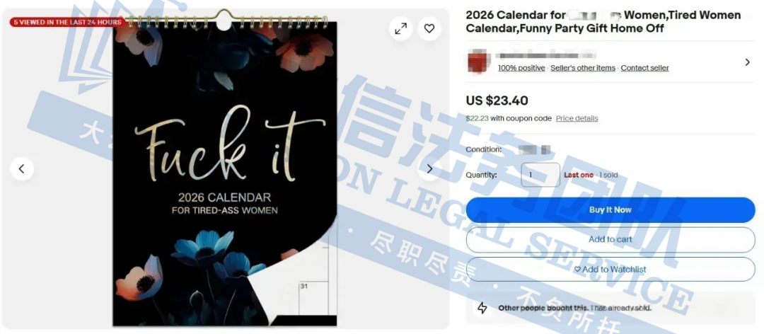 此案为商标维权,涉及商标词:Tired-ass,商标号为:7914906,注册种类在第16大类,涵盖:印刷版台历,印刷版图纸,印刷版挂历等类目,以下是涉及商标的具体信息,未经授权不可擅自使用,侵权风险极高,跨境卖家尽快检索下架,避免造成更大的侵权损失!