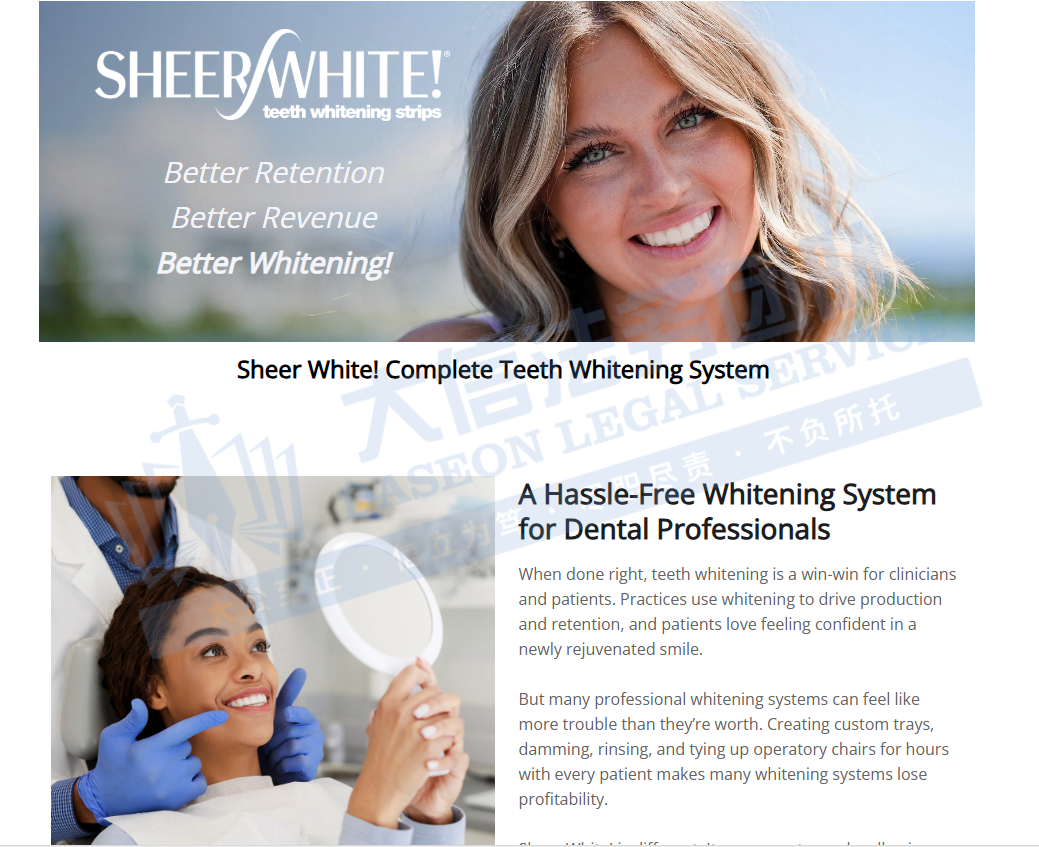 原告CAO Group, Inc. 是美国犹他州盐湖城的技术驱动型创新企业,专注于医疗、牙科设备及消费电子产品的研发、制造与销售。公司以自主研发为核心,拥有包括Sheer White!牙齿美白贴等在内的160多项全球专利,持续推动牙科及医疗领域的技术进步与产品革新。