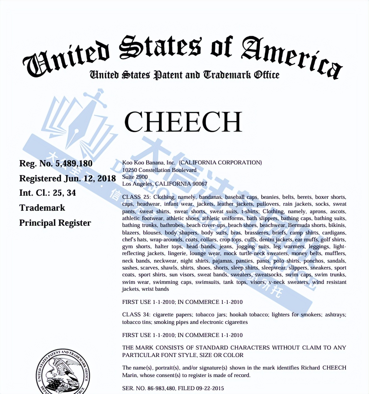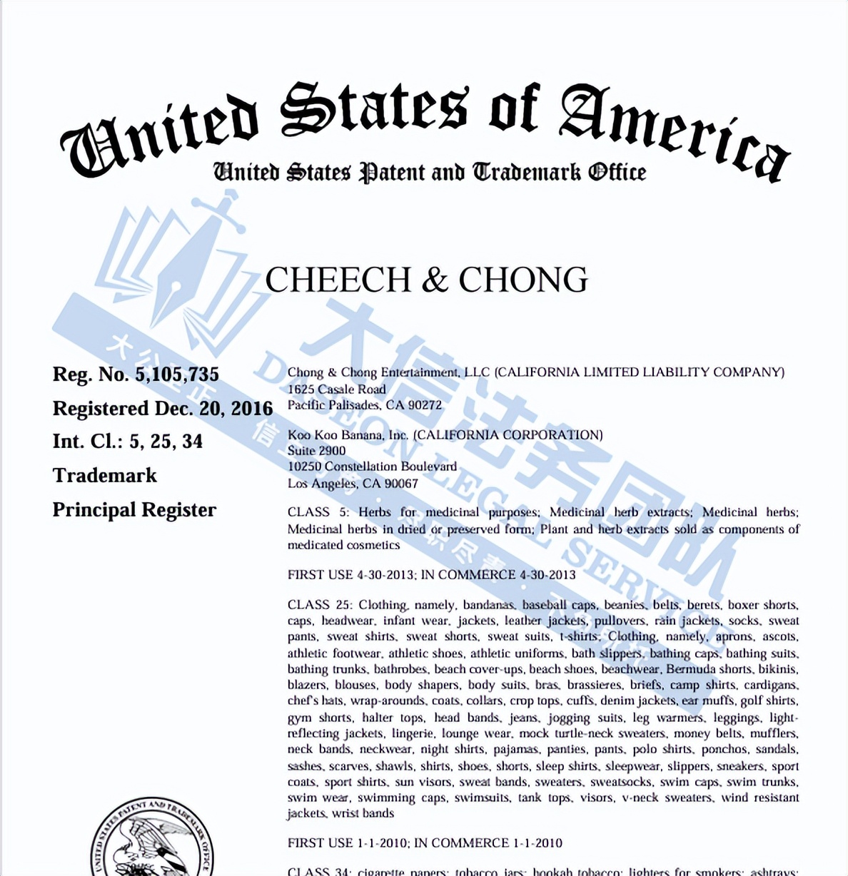 此案为商标维权,涉及CHEECH和CHEECH & CHONG两个文字商标,以下是涉及商标的具体信息,未经授权不得擅自使用,侵权风险极高,跨境卖家尽快检索下架,避免TRO侵权风险!