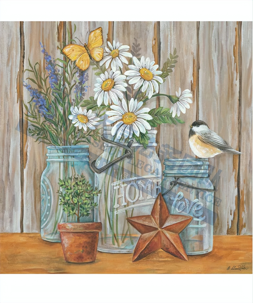 原告是自幼开始绘画,拥有广告与设计专业的学位。她的作品深受礼品卡行业青睐,以丙烯颜料创作一系列风格统一的12幅静物画。“乡村风情”主题贯穿其大部分作品,生动呈现了她家乡的精髓。她认为乡村生活讲究手工制作与质朴本真。