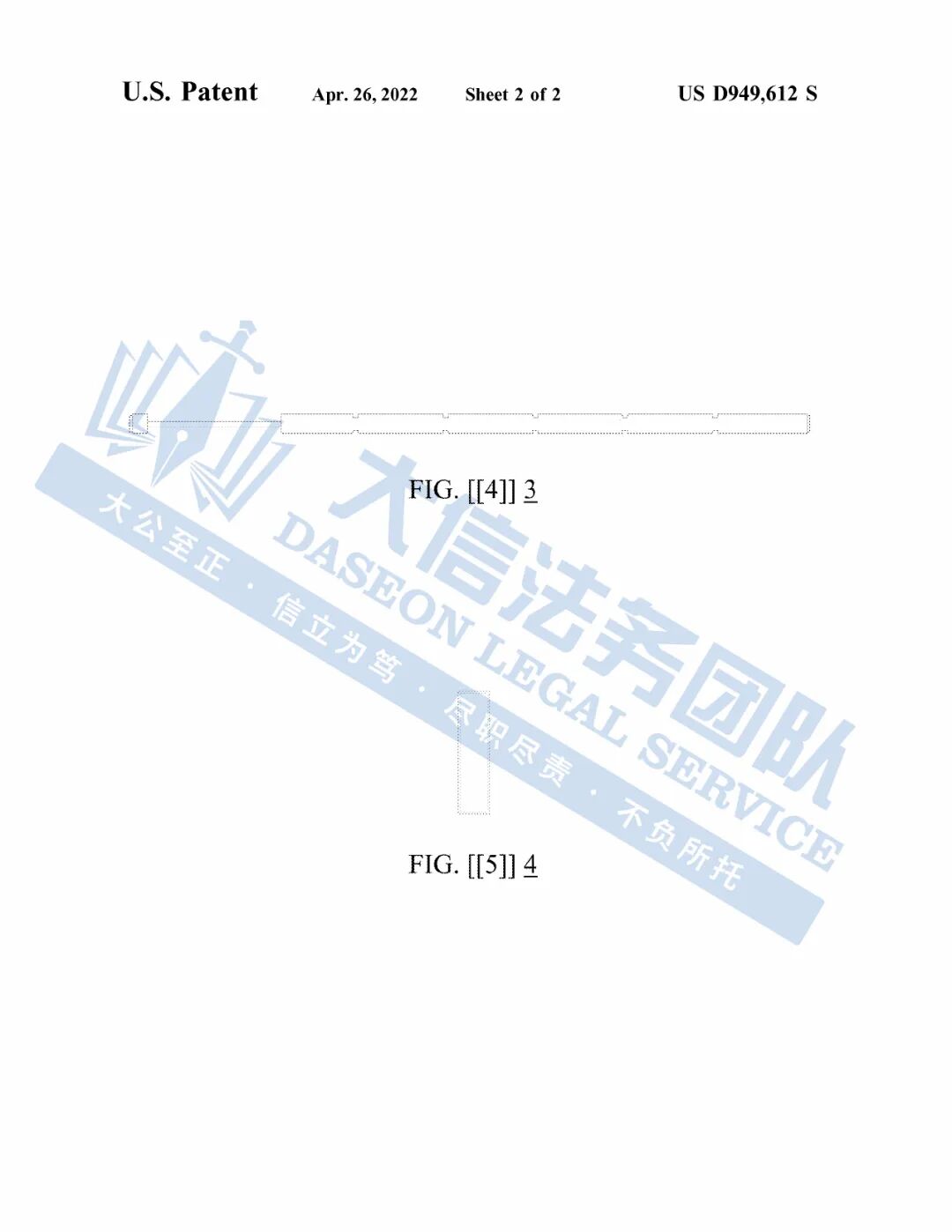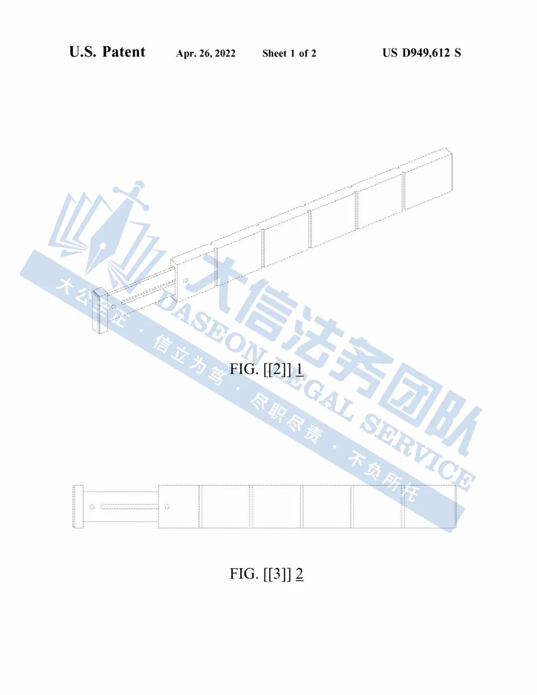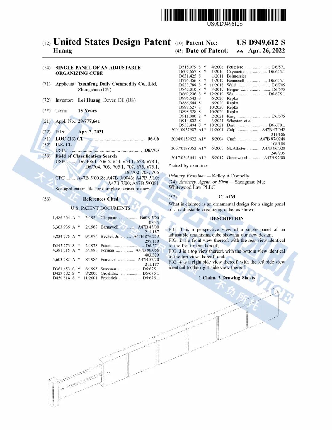 此案为专利维权,涉及一项外观专利,专利号:D949612,于2022年4月26日下证,以下是涉及专利的具体信息,未经授权均不可擅自使用,侵权风险极高!跨境卖家尽快检索下架,避免造成更大的侵权损失!