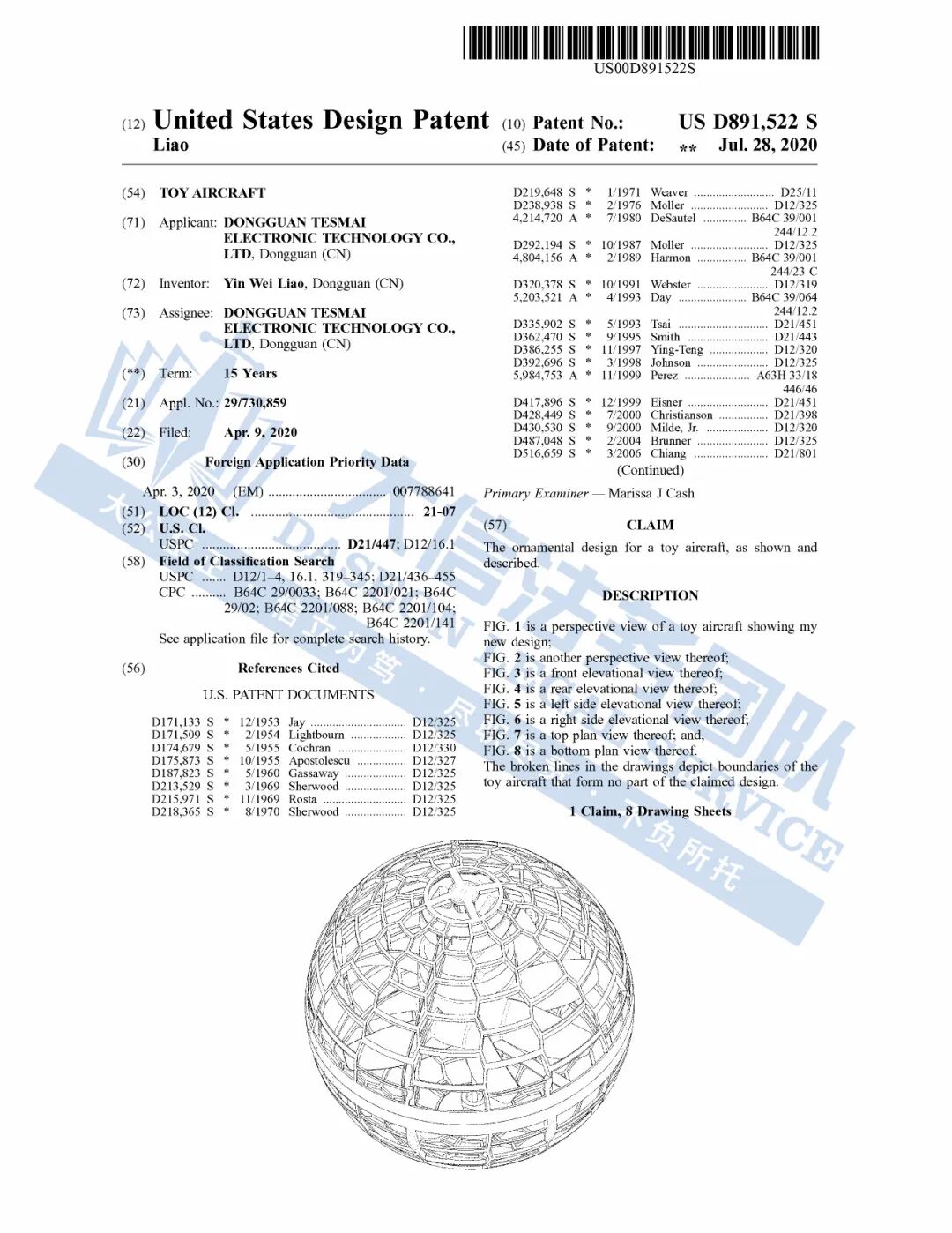 此案为专利+版权维权,原告曾针对US D891,522S的外观专利多次发起过维权,以下是涉及专利+版权的具体信息,未经授权均不可擅自使用,侵权风险极高!跨境卖家尽快检索下架,避免造成更大的侵权损失!