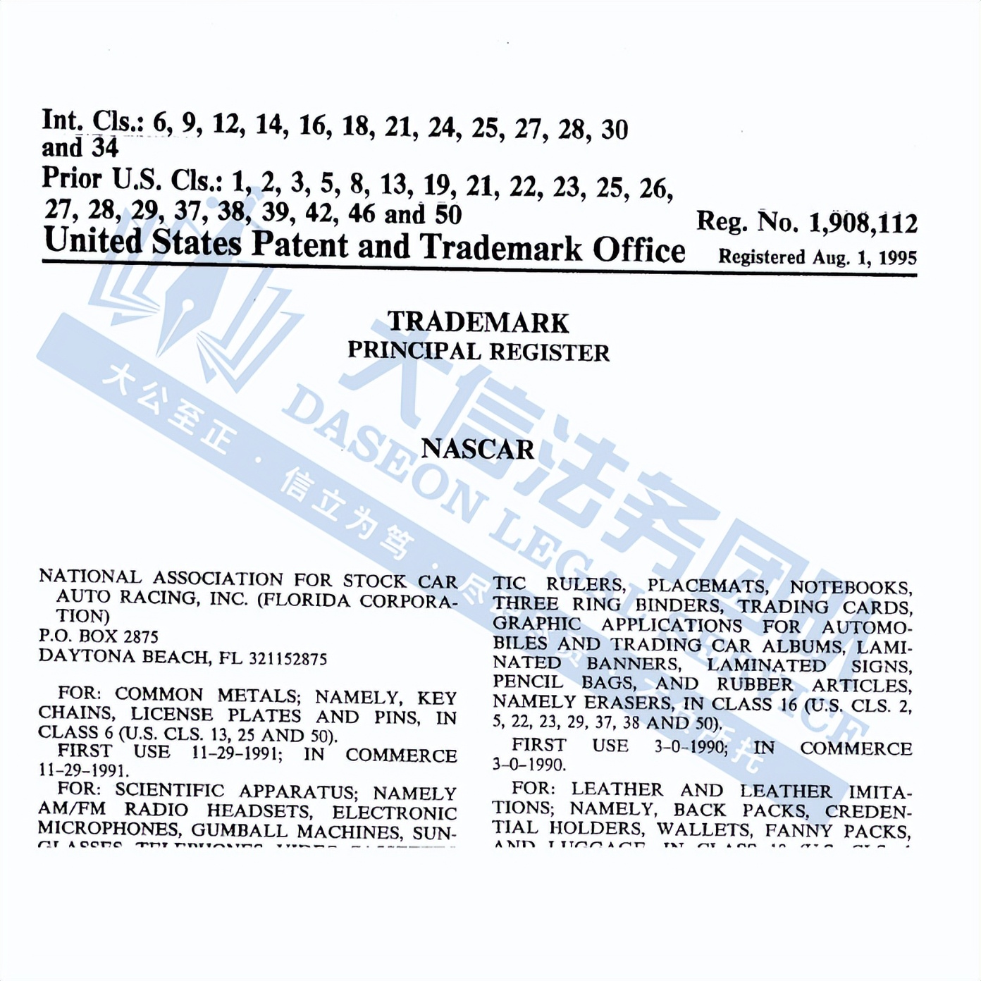 此案为商标维权,共涉及3个商标,维权关键词:NASCAR等商标,以下是商标信息,未经授权不得擅自使用,侵权风险极高!
