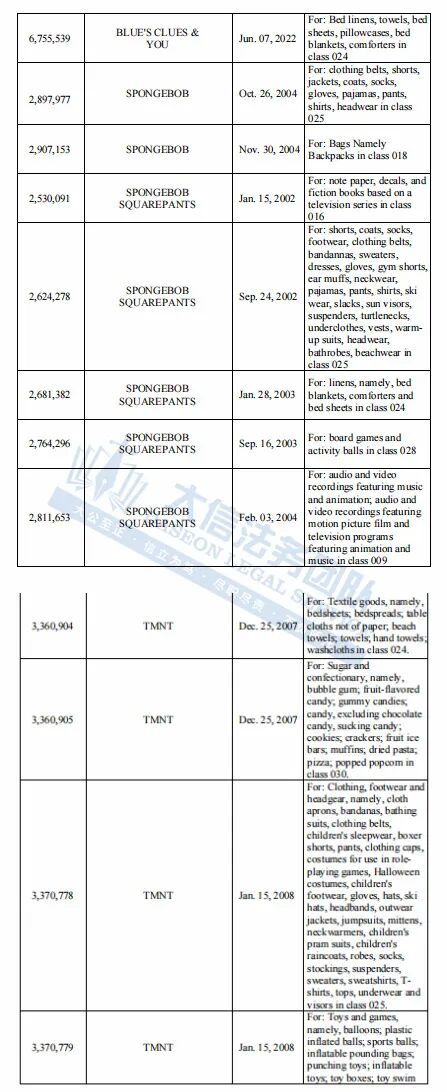 原告是美国知名的全球性娱乐与媒体公司,涵盖电影、电视剧、儿童动画与真人秀等内容类型,手握《海绵宝宝》《忍者神龟(TMNT)》《爱探险的朵拉》《蓝狗线索》等多个全球知名动画IP,业务覆盖北美、欧洲、亚洲等多个市场,长期深耕影视制作、电视网络、流媒体内容及全球发行,是美国娱乐产业中最具影响力的集团之一。