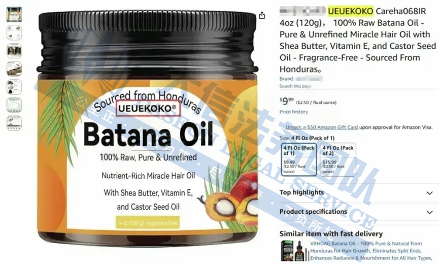 原告是来自美国加利福尼亚州的企业,自 2022 年起主营 Batana 护发油产品,专注于护发油产品,同时膳食补剂、药妆、药膏等多品类业务也有涉及,产品涵盖护发油、去屑洗发水、止痒药膏、维生素软糖、身体乳等,在市场上广受欢迎。