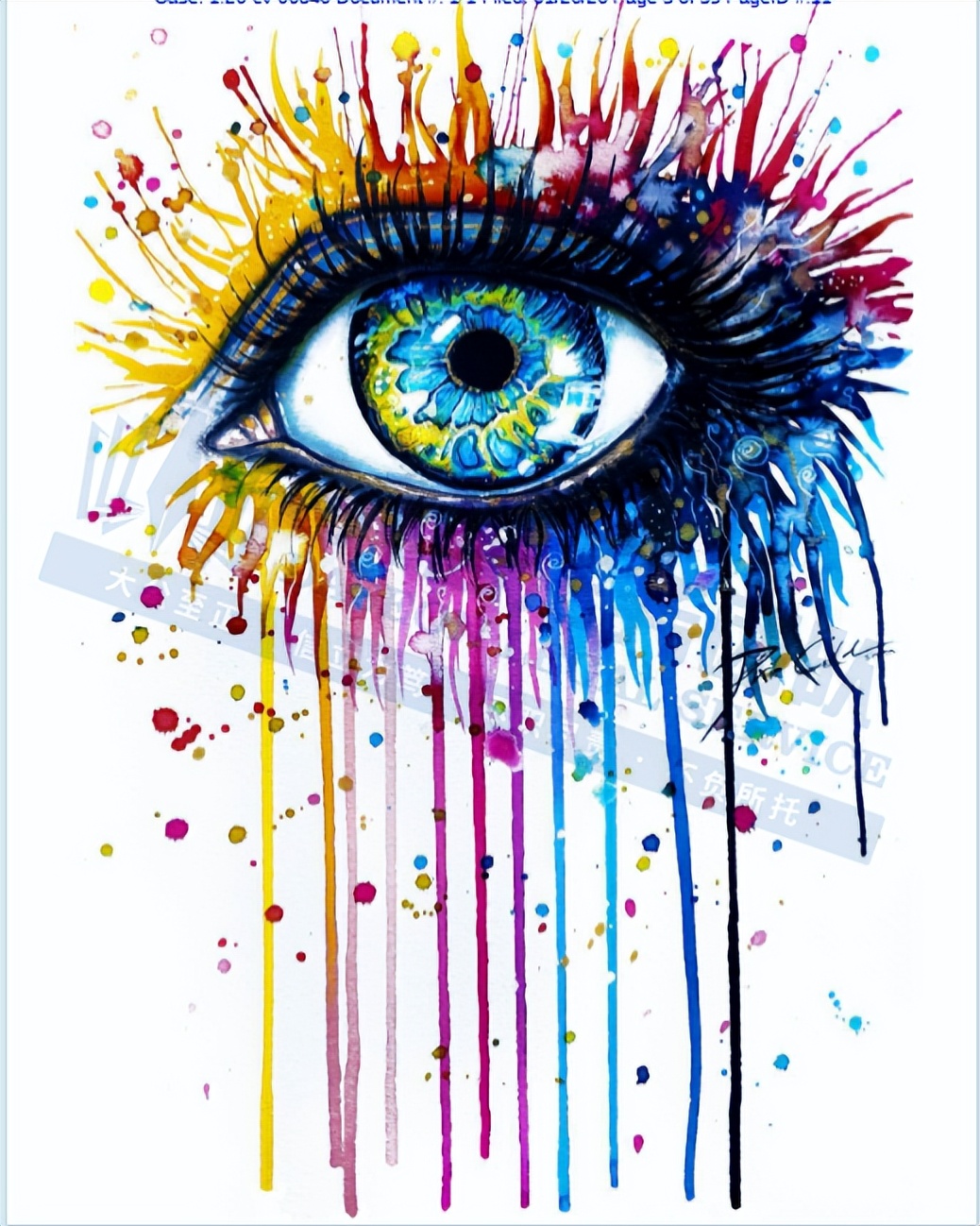 原告是来自德国的艺术家,善于用绚丽的色彩表达个人情感,作品极具创意,对眼睛、动物、人物的刻画都十分传神,除此之外,还擅长用艳丽的色彩装扮出了花朵的样子,和遇色而来的昆虫交相辉映着,除了视觉上带来的震撼之外,还有一种自然的亲近感。