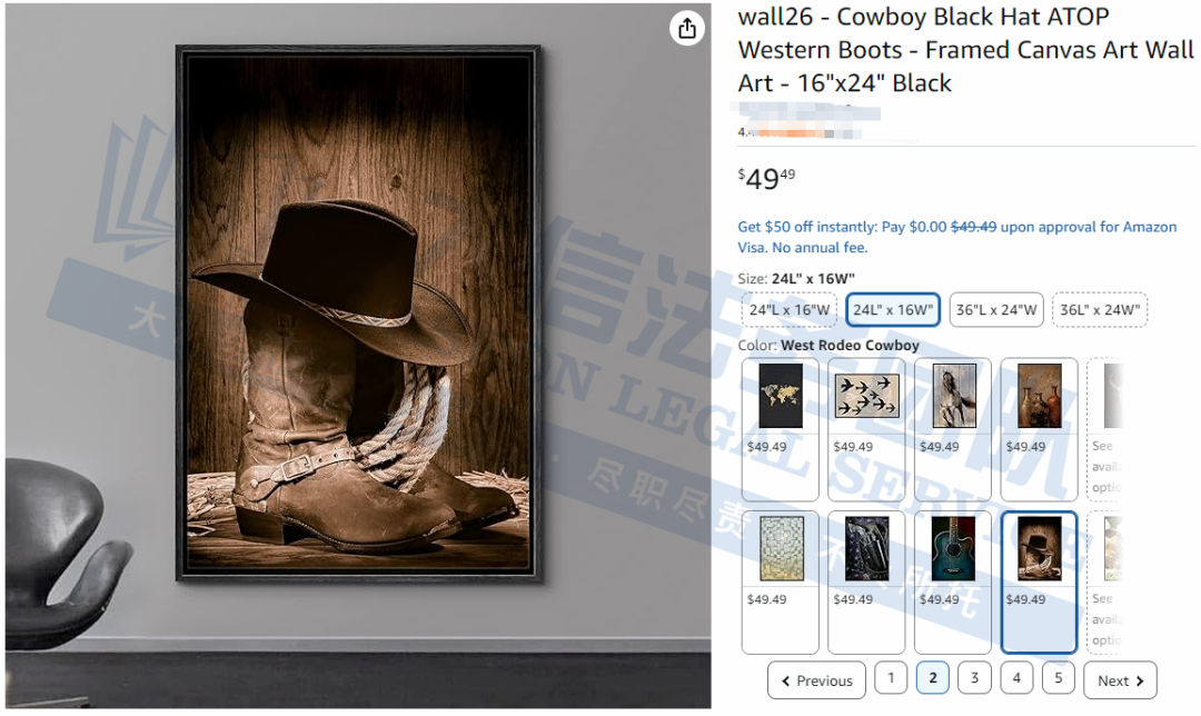 原告是来自法国专业摄影师,他的“西部牛仔”摄影作品属于静物创意摄影,通过精心布景和光影,营造独特的复古氛围,西部牛仔系列(Western Cowboy)静物摄影作品中常包含牛仔靴、牛仔帽、复古手枪、马鞍、套索等标志性物品,这些摄影作品被广泛用于制作装饰画、海报、拼图及各类家居用品进行销售。