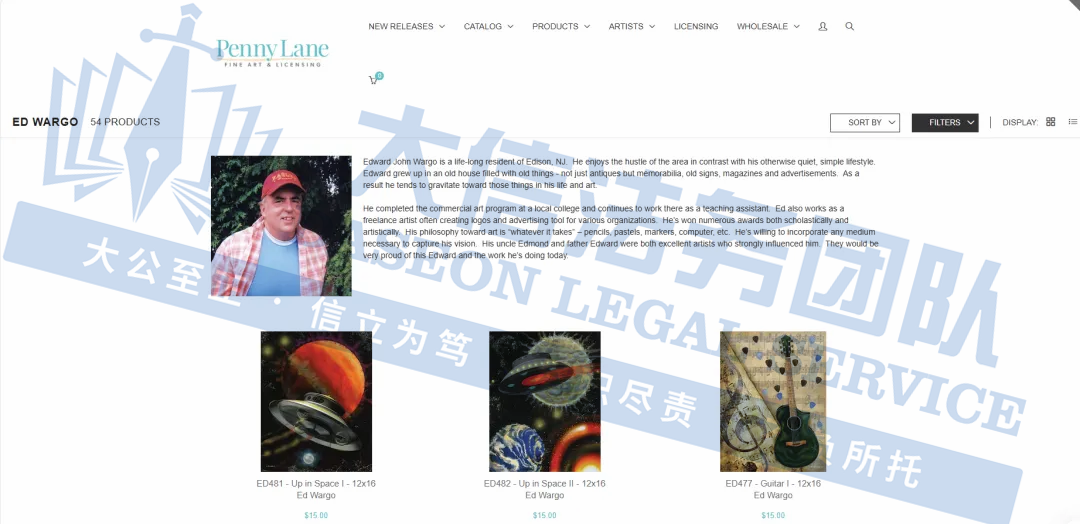 原告是一位自由艺术家,擅长运用铅笔、粉彩、马克笔及电脑等多种媒介将灵感转化为作品。其作品既保留手工质感,又融入数字时代的多元表达。Edward Wargo的创作不拘泥于形式,既能用传统技法描绘细腻光影,也能通过电脑软件构建超现实场景。他通过拼贴、重构赋予日常物品新的艺术生命,将生活碎片转化为充满叙事性的视觉语言。