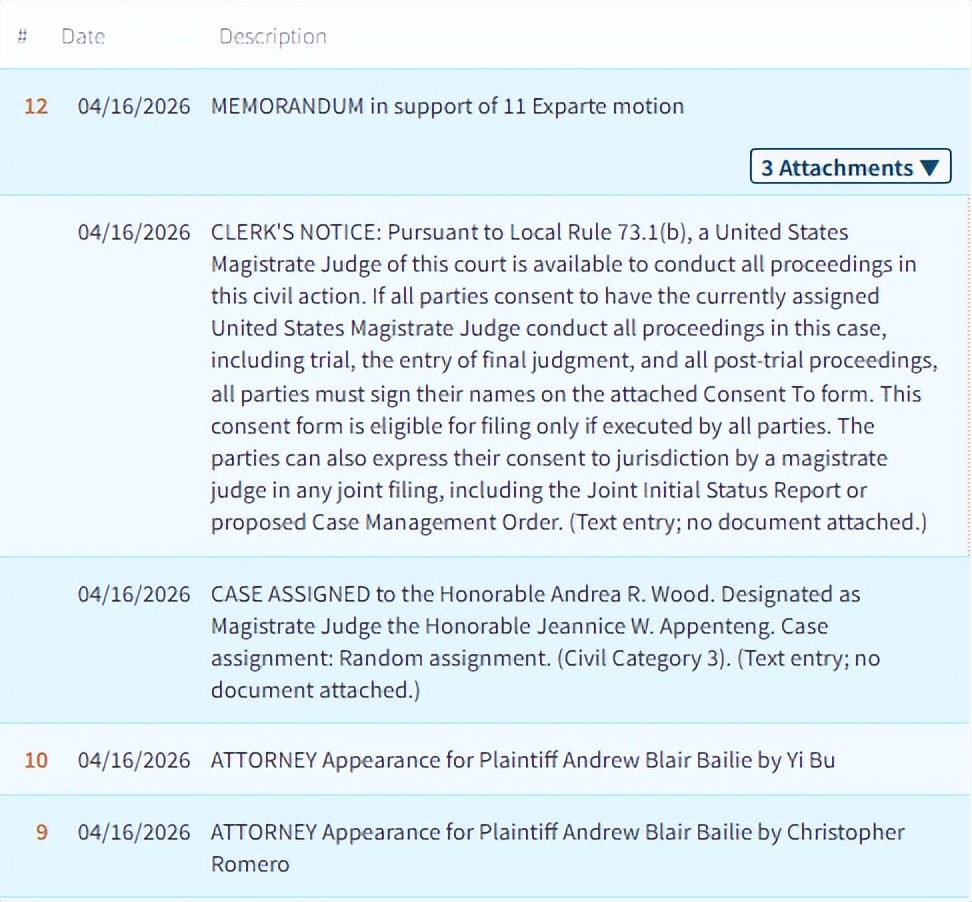 受理法院:伊利诺伊州北区地方法院