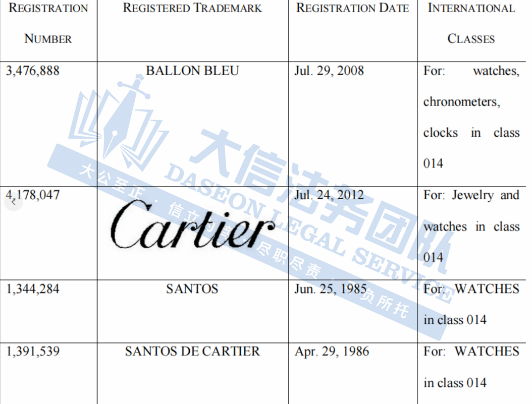本案为隐匿发案,涉及原告Cartier注册的系列文字商标。本案共有170家店铺被波及,以下是涉及商标的具体信息,未经授权不得擅自使用,侵权风险极高,跨境卖家尽快检索下架,避免TRO侵权风险!